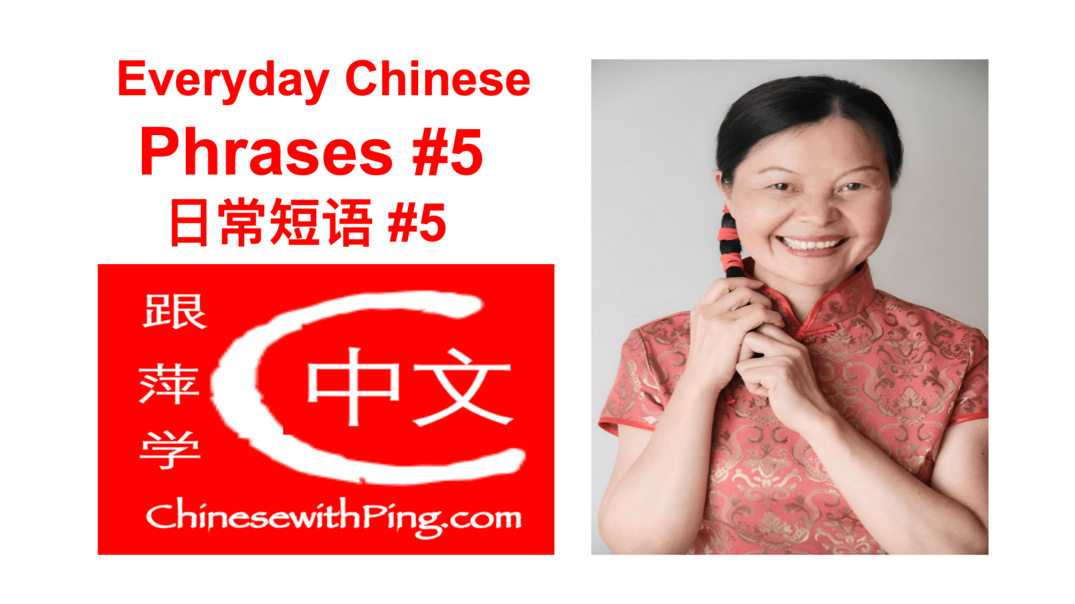 This is Everyday Chinese Phrases #5: Subscribe to ChinesewithPing 跟萍学中文 for more free lessons. Subscribe to MyPingsWorld 萍的世界 to watch Chinese classics music videos to learn Chinese through songs. Chinese with Ping – Learning Chinese Made Easy! My Pings World ~ Home of Chinese Classics Music Videos http://www.ChinesewithPing.com http://www.MyPingsWorld.com